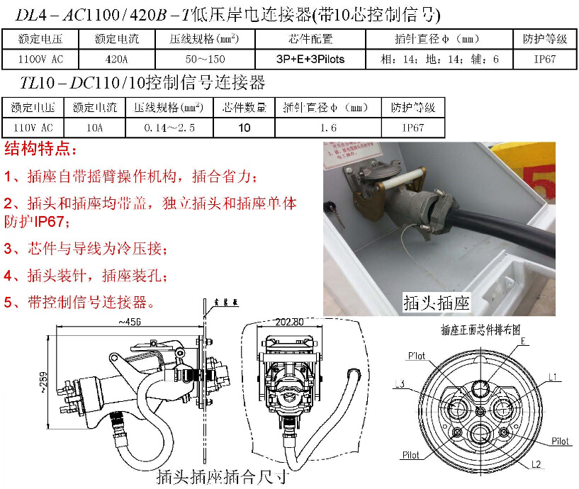 DL4-AC1100/420B-T低壓岸電連接器(帶10芯控制信號)